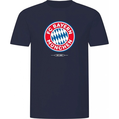 Tmavě modré tričko FC Bayern Mnichov s barevným klubovým znakem na hrudi. Klasický střih s krátkým rukávem. Kvalitní 100% bavlna zajišťuje pohodlí při nošení. Barva: tmavě...