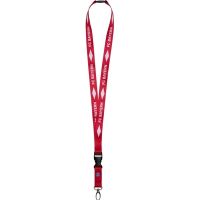 Klíčenka FC Bayern Mnichov v červené barvě. Opakující se nápis FC BAYERN. Praktické plastové zapínání. Ve spodní části kovový klip na uchycení klíčů. Délka 18 cm je vhodná i pro...