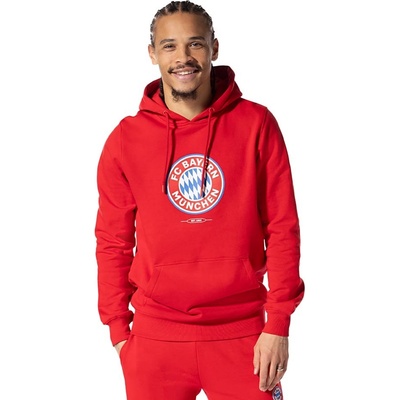 Červená mikina Bayern Mnichov s velkým logem a 5 hvězdami. S kapucí a šňůrkami. Klokaní kapsa. Materiál: 100% bavlna.