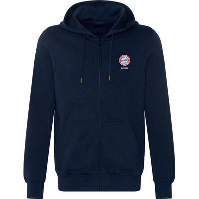 Mikina FC Bayern Mnichov v tmavě modré barvě a červené detaily. Natištěný klubový znak a nápis. Stahovací tkanice na kapuci. Zapínání na zip. Elastický pas a zakončení rukávů....