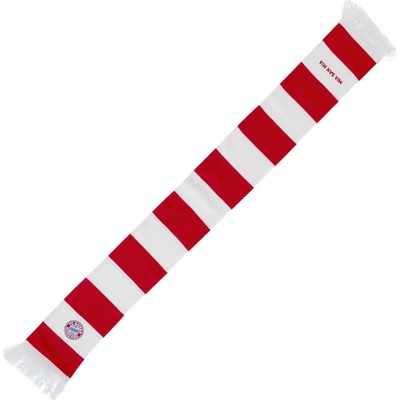 Šála FC Bayern Mnichov v kombinaci červené a bílé barvy. Pruhovaná. Nápis MIA SAN MIA v kontrastní barvě. Zakončena třásněmi. Příjemný materiál. Barva: červená a bílá Materiál:...