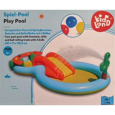 -Dvoudílný bazén s fontánou, skluzavkou a rolovací dráhou se 4 míčky -Fontána s připojením pro standardní zahradní hadice -Pojme přibližně 206 l (při 75% naplnění) -Obsahuje: 10...