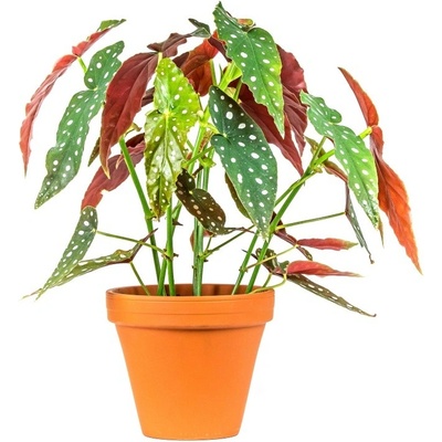 Tato begonie je rozhodně jednou z nejzajímavějších. Její listy jsou podlouhlé a zakončené ostrou špičkou. Vrchní část listů je tmavě zelená a zdobí jí bílé puntíky. Spodní část...
