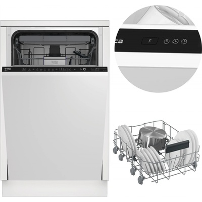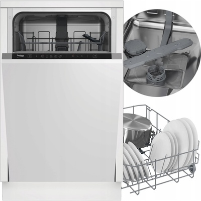 Beko DIS48120 Vestavná úzká myčka Beyond, 8 programů: Auto program, Předmytí, GlassCare, Mini 30, Eco 50, Quick & Shine, Intensive 70, AquaFlex Plně vestavná 45cm myčka na 11 sad nádobí umyje i nejpřipečenější zbytky díky speciálnímu rameni AquaIntense®. Šikovná...