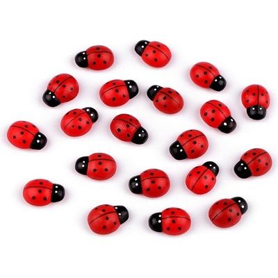 Malé dřevěné berušky mají na spodní straně samolepicí pěnovou tečku Velikost 12 x 16 mm