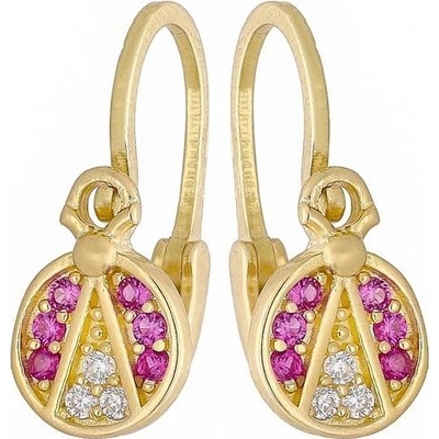 Dětské visací náušnice vyrobené ze žlutého zlata o ryzosti 585/1000 (14 kt). Váží 1,35 g a jejich výška je 1,3 cm. Náušnice mají motiv zvířete a jsou zdobeny více kameny. Typ...