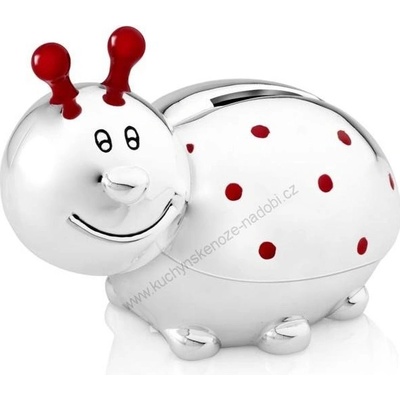 Postříbřená pokladnička ve tvaru berušky s červenými puntíky. Povrch pokladničky je lakovaný, proto není třeba ji leštit. Rozměry: 7,4 x 10,9 x 8,2 cm Bredemeijer Group je...