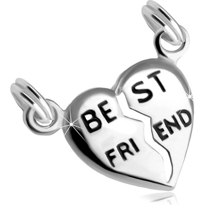 Dvojpřívěsek ze stříbra 925 - přelomená srdce s nápisem Best friend.
