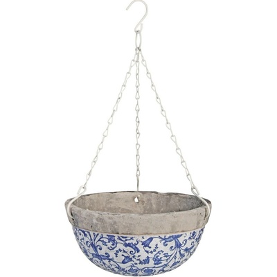 Esschert Design ZÁVĚSNÝ BETONOVÝ květináč KELLY 11,5X25,5 CM BÍLÁ/MODRÁ