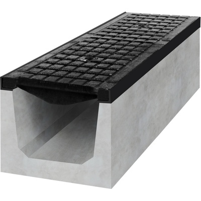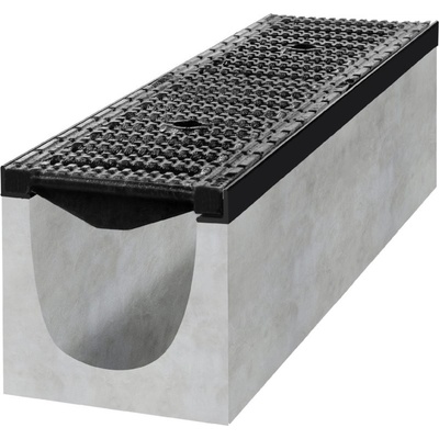 Odvodňovací žlab třídy únosnosti A15 (1,5 t) vyrobený z betonu třídy C35/45 výborně plní svoji funkci odvodnění zpevněných ploch u rodinných domů, vjezdů do garáží, vjezdů na...