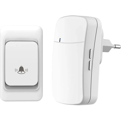 Bezdrátový zvonek vhodný všude tam, kde přijímač potřebujeme trvale umístit do zásuvky 230V. Komplet obsahuje dva přijímače pro dvě různá umístění (chodba, garáž), zvonění...