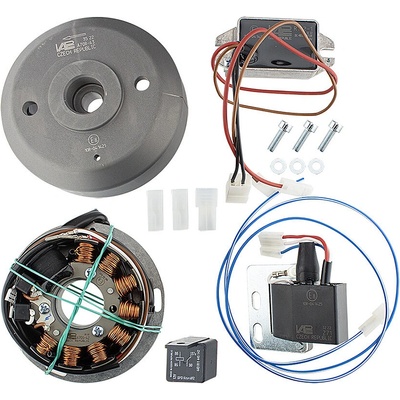 Sada bezkontaktního zapalování Vape - česká výroba, je určena jako náhrada 12V třífázového alternátoru použitého u motoru Jawa 350 typ 632, 638, 639, 640. Zcela nahrazuje zdrojovou zapalovací soustavu (rotor, stator) včetně usměrňovače, regulátoru, indukční...