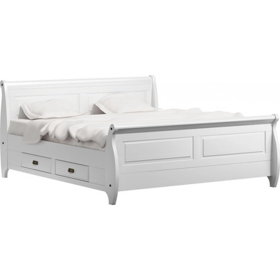 Bílá postel DMD1 160 x 200 cm Postel dvoulůžkové DMD1 je zhotovena z masivu borovice a kvalitní MDF desky, a tak je nábytek velmi odolný a stabilní. Klasický vzhled se hodí do...