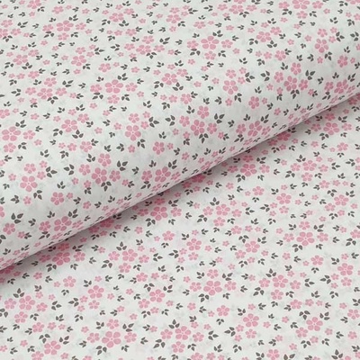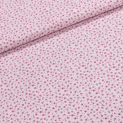 Bavlněná látka (tkanina) s motivem sytě růžových květinek na bílé. Látka je v šířce 160 cm, vyrobena ze 100% bavlny (gramáž 135g/m2) v plátnové vazbě. Vzor látky je natištěn...