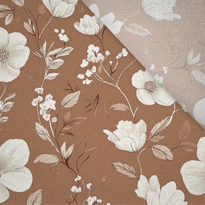 Směsová látka (tkanina) se vzorem bílých květin na béžovém podkladu. Látka je v šířce 140 cm a je vyrobena z 55% bavlny a 45% polyesteru. Motiv na látce je pouze z jedné strany,...