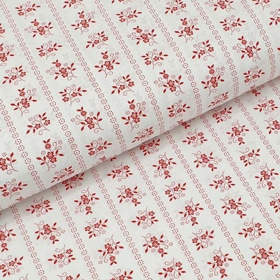 Bavlněné plátno bílé, červený květinový motiv. Složení látky 100% bavlna. Metráž má šířku 140 cm. Bavlněné látky se používají ke zhotovení šatů, sukní, kalhot. Bavlněné plátna...