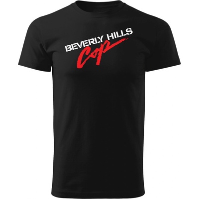 Pánské tričko Policajt z Beverly Hills - Alex F Bavlněné černé tričko s motivem loga úspěšné komediální filmové série Beverly Hills Cop. Pokyny pro údržbu a praní trička:-...