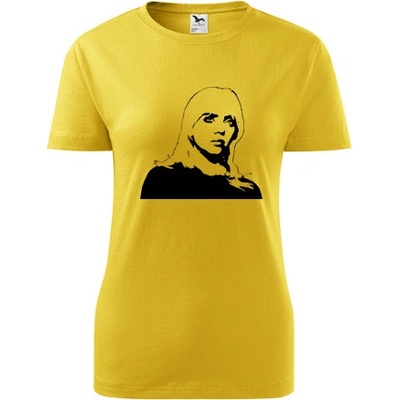 Žluté dámské tričko Billie Eilish. nabízené velikosti jsou S,M,L,XL,XXL. Výběr z 12ti barev. Tričko patří do kategorií . Technologie potisku: Tisk na tričko je realizován pomocí...