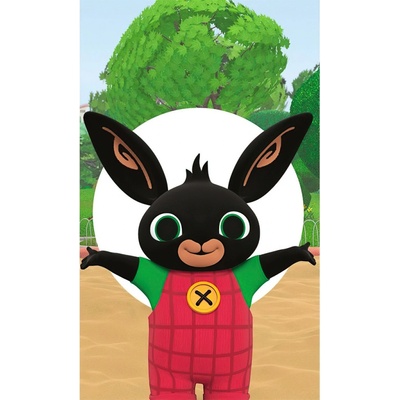 Oficiálně licencovaný dětský ručník černý zajíček Bing. Zajíc Bing na obrázku má roztažené ruce, je radostný na sobě má červenozelený obleček se žlutým knoflíkem. Rozměry 30 x...