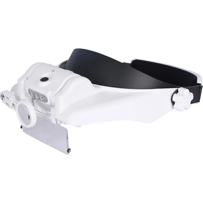 Brýlová binokulární lupa s LED osvětlením, se čtyřmi plastovými výměnnými čočkami a to: 1. zvětšení 10,0x, průměr 20mm; 2. zvětšení 15,0x, průměr 20mm; 3. zvětšení 20,0x, průměr 15mm; 4. zvětšení 25,0x, průměr 15mm. Očnice je možné naklápět. Osvětlení - 2ks vysoce...