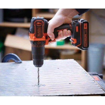 Aku příklepová vrtačka Black+Decker BCD003C1 s dvourychlostní převodovkou a konstrukcí z odlehčeného materiálu pro pohodlnou manipulaci a vrtání a šroubování i v hůře...