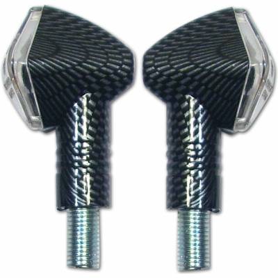 Blinkry na motorku MOTION STUFF 1021 karbon Blinkry s karbonovým vzhledem a oranžovým sklíčkem Dlouhá nožička viz. obrázek Blinkry osazeny čirými halogenovými žárovkami 12V...