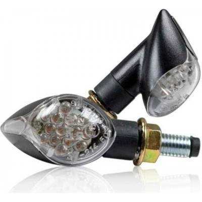 Detailní popis Blinkry Arrow na motorku, vnější čiré vnitřní oranžové, černá, krátké, M8 - černé krátké provedení - vnější čiré vnitřní oranžové - 12V / 21W halogenová...