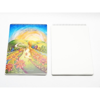 Kroužkový blok s dvojitou spirálou. Boční vazba umožňuje snadné otáčení a odtrhávání stránek. Uvnitř linkované listy s perforací.
