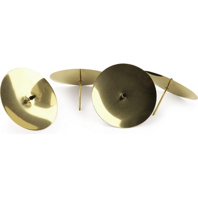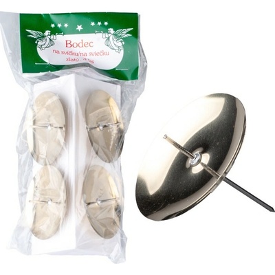 Kovové zlaté bodce jsou vhodné k výrobě adventních věnců. Delší hrot použijete k upevnění na základnu dekorace, svíčku pak napíchnete na kratší hrot v misce. Průměr misky je 6 cm. Spodní hrot měří 3 cm, horní hrot 1 cm. Barva: zlatá v lesku Balení obsahuje 4...
