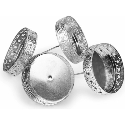 Kovové bodce působí díky filigránovému okraji elegantně a netradičně. Využijete je na výrobu adventních věnců a podobných dekorací. Svíčky se do nich nezapichují, ale pokládají. Průměr misky je 7,5 cm. Výška okraje je 1,8 cm. Spodní hrot měří 6 cm.