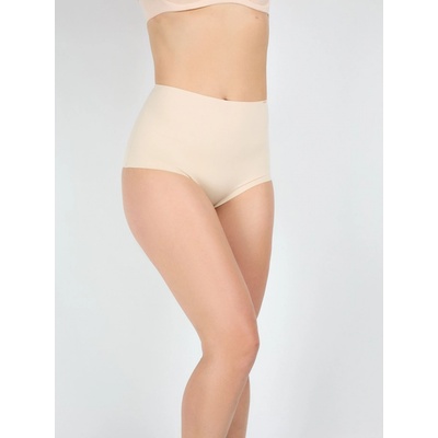 Dámské stahující kalhotky Emili Novia v béžové barvě se zvýšenou linii pasu. Okraj kalhotek byl vytvořen speciální laserovou technologií, vnitřní část rozkroku kalhotek je podšita bavlněnou látkou.