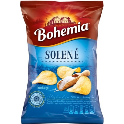 Bohemia chips - oblíbené bramborové lupínky, nakrájené na tenké plátky, připravené na kvalitním oleji a jemně osolené.