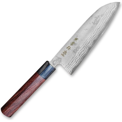 Japonský nůž šéfkuchaře Santoku ze série Kanetsune Blue Steel "Zen-Bokashi" Extrémně ostrý nůž Santoku ze série Kanetsune Blue Steel "Zen-Bokashi" s jádrem z oceli Blue steel #2, vloženým mezi 11 vrstev damaškové oceli. Kuchyňský nůž Santoku je bezohledný kuchyňský...