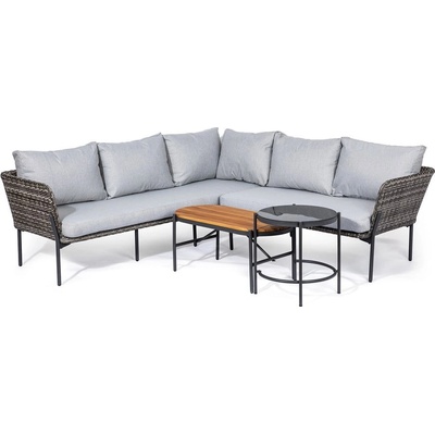 Díky setu zahradního nábytku s rohovou sedačkou Bonami Selection si užijete venkovní posezení s celou rodinou. Nábytek je kromě kovu a teakového dřeva, vyroben z umělého...