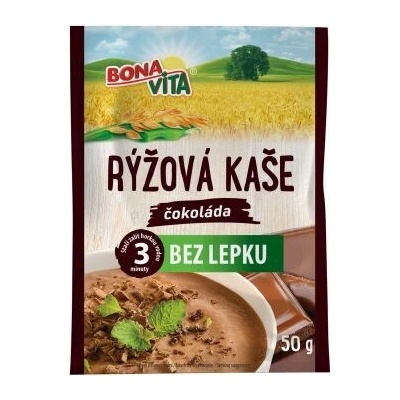 Bonavita Rýžová kaše čokoláda 50g Složení: Rýžová mouka 33,3 %, glukózový sirup, třtinový cukr 13,2 %, slunečnicový olej, vláknina inulin, kukuřičný škrob, čokoláda 5 %...