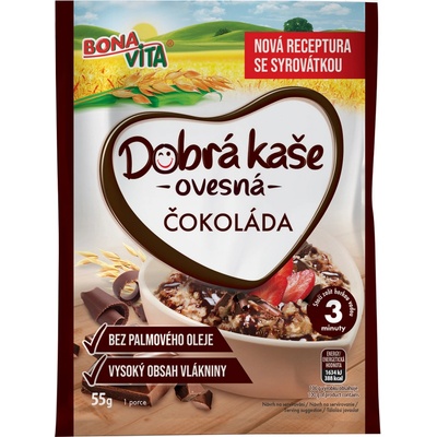Teplá čokoládová snídaně připravená během několika minut BONAVITA Dobrá kaše ovesná čokoláda 55 g je ideální volbou pro rychkou, ale vyváženou snídani nebo svačinu. Spojení...