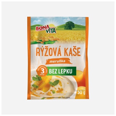 Bonavita Rýžová kaše meruňka bez lepku 50 g. Stačí zalít horkou vodou a do 3 minut je kaše hotová. Příprava : Smíchejte celý obsah sáčku s vařící vodou 140 ml, důkladně...