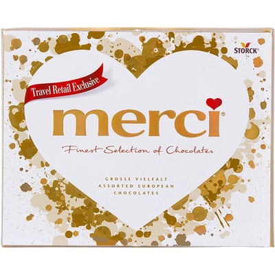 Sladké dárky pro každou příležitost.... Bonboniera Merci 400g Merci 8 druhů vybraných čokoládových specialitMléčná čokoláda plněná lískoořechovým krémemSmetanová čokoládaMléčná čokoláda s kousky jader lískových ořechů a kousky mandlíMléčná čokoláda plněná krémemHořká...