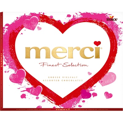 Merci Mix Valentýn 250g Valentýské dárkové balení oblíbené čokolády Merci. Obsahuje 8 druhů čokoládových specialit: mléčná čokoláda, smetana a káva, lískové oříšky a mandle,...