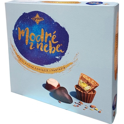 Orion Modré z nebe 150 g za internetové ceny Oblíbený produkt z kategorie: Čokolády a sladké laskominy Bonboniéry a sladké čokoládové kazety . Orion Modré z nebe 150 g máme běžně skladem. Zákonný název potraviny: Zmes čokoládových praliniek. Složení produktu Orion...