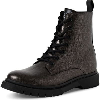 Dámské kotníkové boty Tamaris se šněrováním a postranním zipem pro snadné nazouvání. Boty mají metalický vzor. Podešev:Podešev obuvi s protiskluzovým vzorkem je vyrobena ze...