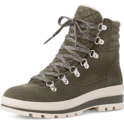 Dámské šněrovací kotníkové boty Tamaris na bytelné podrážce s lehkým zateplením a bočním zipem pro snadnější přezouvání. Podešev:Podešev obuvi je s protiskluzovým vzorkem...