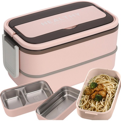 Box na jídlo 1400ml, dvoupatrový, růžový 07328_R JIPOS Dvoupatrový box na jídlo o objemu 1400 ml je praktickým řešením pro každodenní přenášení jídel doma i na cestách. Díky...