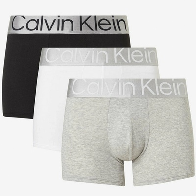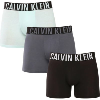 Pánské spodní prádlo od značky Calvin Klein s logy na horní části. V balení troje boxerky - černé s all over motivem, černé a šedivé.