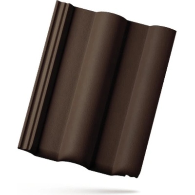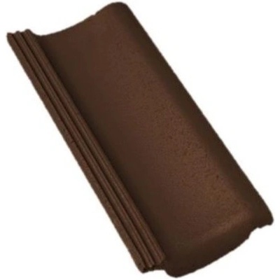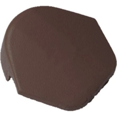 Betonová uzávěra hřebenáče k betonové střešní krytině Bramac Classic Protector Plus tmavohnědé barvy. Slouží ke krajnímu zakončení vrcholu střechy (hřebene).