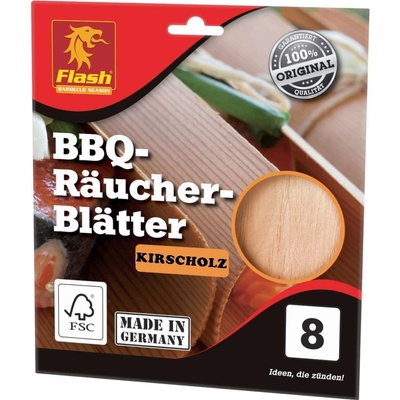 Vonné listy třešně Flash 8 kusů. Poskytují kouřové grilované aroma. Grilované jídlo jednoduše zabalte do listů. Pro použití ve všech grilech a udírnách 100% přírodního původu....