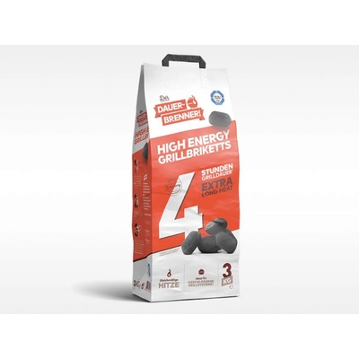 Grilovací brikety od značky Dauerbrenner zaručují konstantě vysoké teplo při grilování. Hoří dvakrát déle než dřevěné uhlí, a to až 4 hodiny a zanechávají malé množství popela....