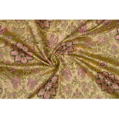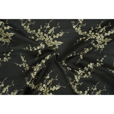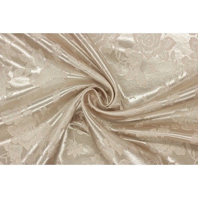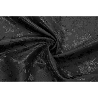 Brokát s květy. Je pevný, drží tvar, na omak je znát jemná struktura. Vhodný na saka, sukně, šaty, vesty, společenský oděv, historické kostýmy, kabelky a jiné doplňky.