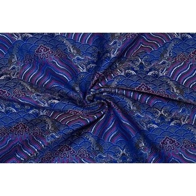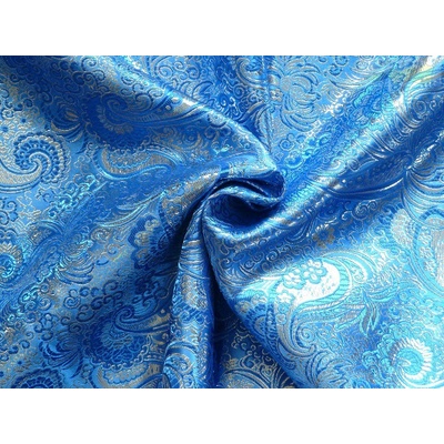 Modrý brokát se stříbrnou výšivkou. používají se na společenské oděvy - saka, sukně apod., historické kostýmy a také se používají k dekoračním účelům.