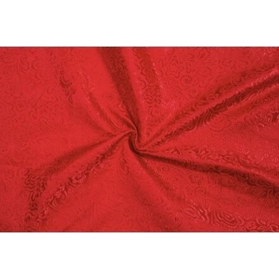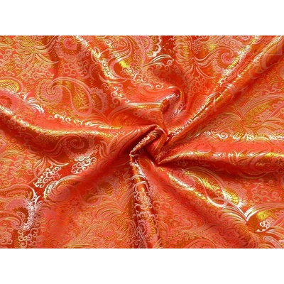 Červený brokát s hustě tkanou zlatou výšivkou. používají se na společenské oděvy - saka, sukně apod., historické kostýmy a také se používají k dekoračním účelům.